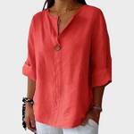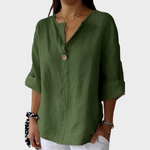 Bu bluz, sadelik ve sofistikeliği modern ve çok yönlü bir tasarımda bir araya getiriyor. Ortadaki düğme detayı zarif bir dokunuş katarken, rahat kesimi hareket özgürlüğü ve konfor sağlıyor.