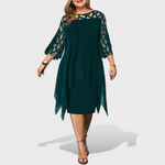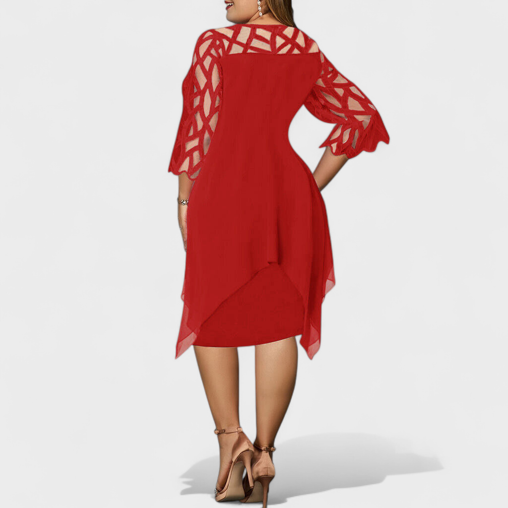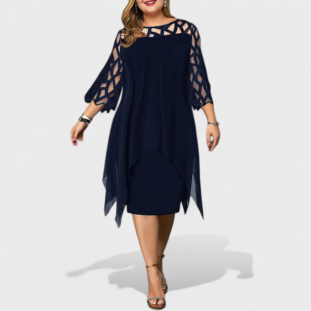 Bu elbise, zarafet ve konforu bir araya getirirken, modern ve şık bir dokunuş katan geometrik desenli transparan kollarıyla öne çıkıyor. Akıcı kesimi sayesinde hafiflik ve şıklık sunar, özel davetlerde ya da kendinizi özel hissetmek istediğiniz anlarda mükemmel bir seçimdir.