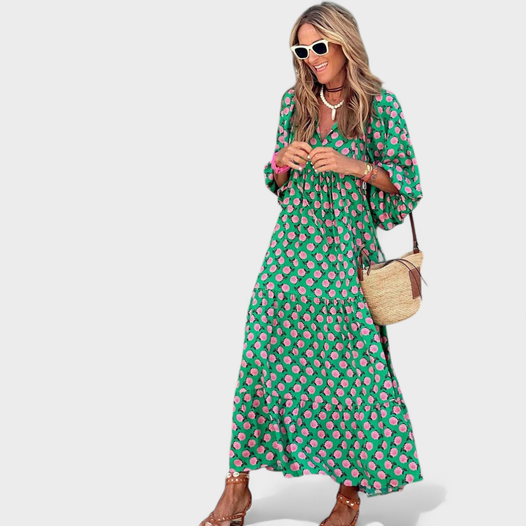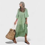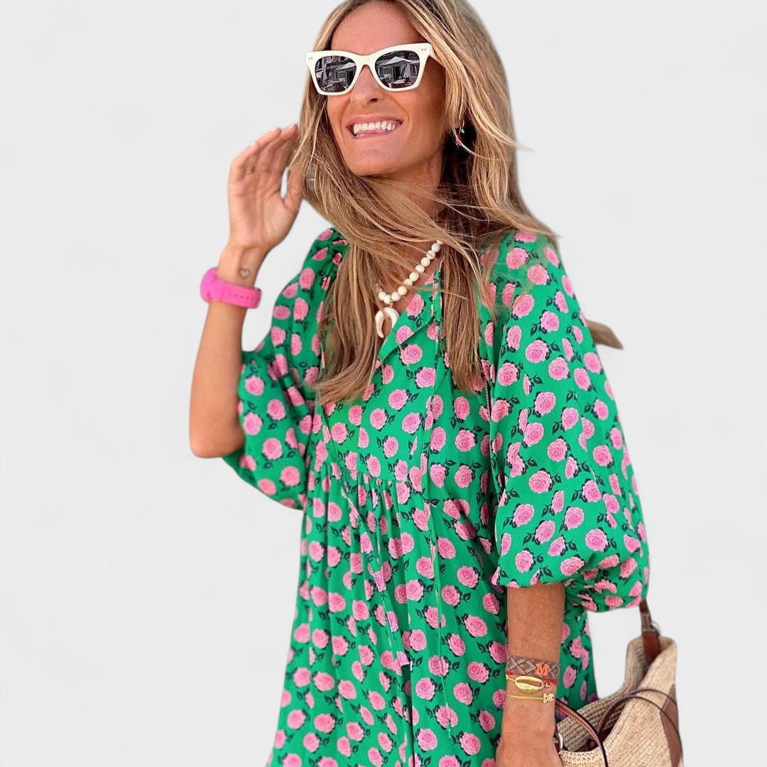 Hafif, akıcı ve zarif bir elbise, her ortamda ferahlık ve rahat şıklık sunar. Bu model, rahatlığı, şıklığı ve enerjik bir dokunuşu bir araya getirmek isteyen kadınlar için tasarlandı.