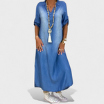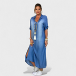 Bu elbise, pratik bir görünüm ararken şıklıktan ödün vermek istemeyenler için mükemmel bir seçimdir. Rahat kesimi, yaka detayı ve yan yırtmaçları ile modern, ferah ve özgün bir tarz sunar; ister günlük yürüyüşlerde ister özel buluşmalarda şıklığınızı ön plana çıkarır.