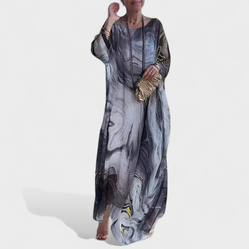 Bu elbise, akıcı kesimi ve sofistike deseniyle her hareketinize hafiflik ve kişilik katıyor. Rahatlığı ve özgünlüğü bir arada arayan kadınlar için mükemmel bir seçimdir. İster günlük bir gezide ister özel bir davette, her ortamda dikkat çekici ve zarif bir görünüm sunar.