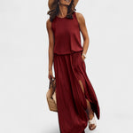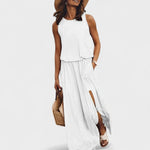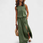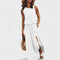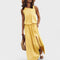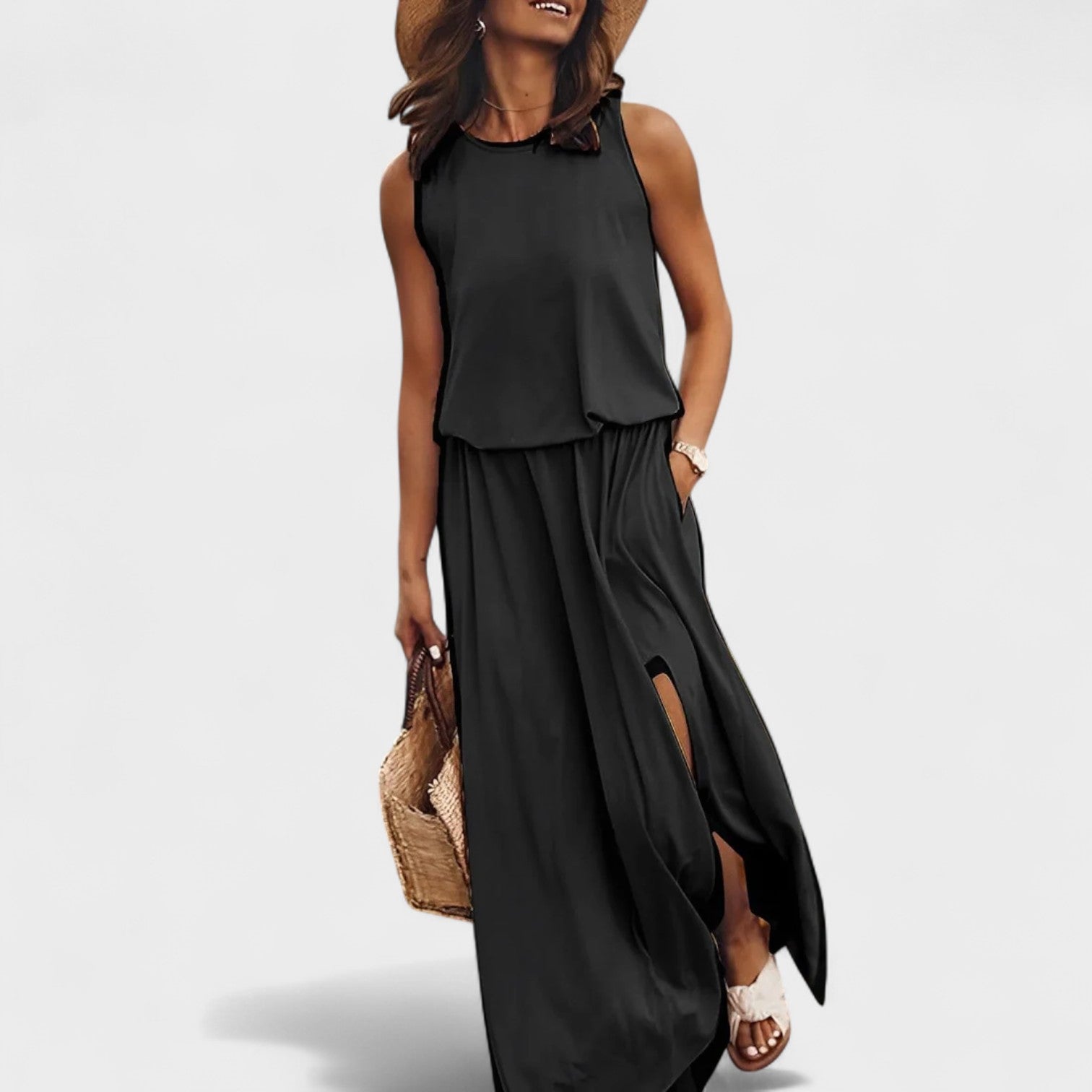 Akıcı kesimi ve modern detaylarıyla bu uzun elbise, doğal bir şıklık ve hareket özgürlüğü sunuyor. Yandaki yırtmaç detayı zarif bir dokunuş katarken, hafif yapısı her adımda ferahlık ve zarafet sağlar.