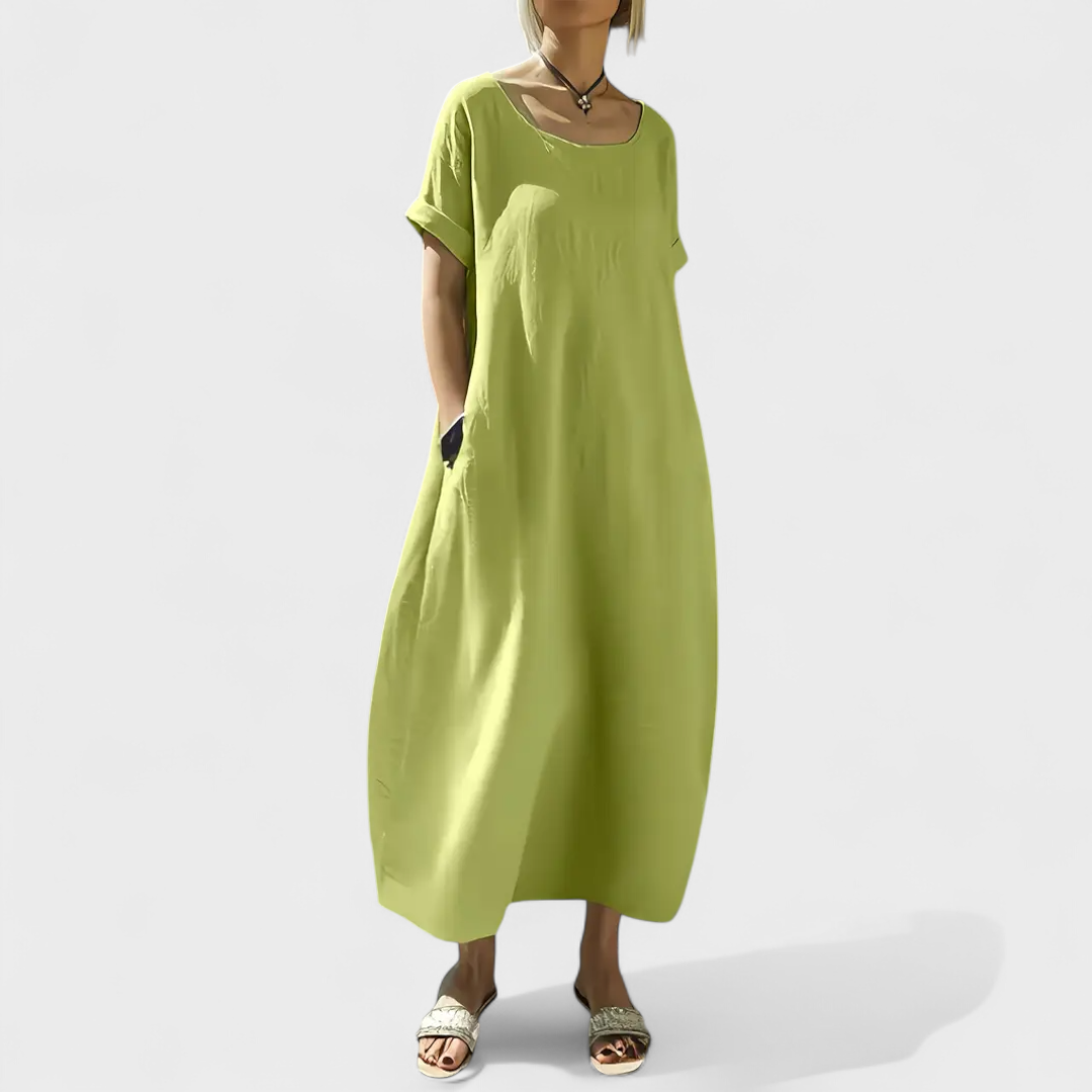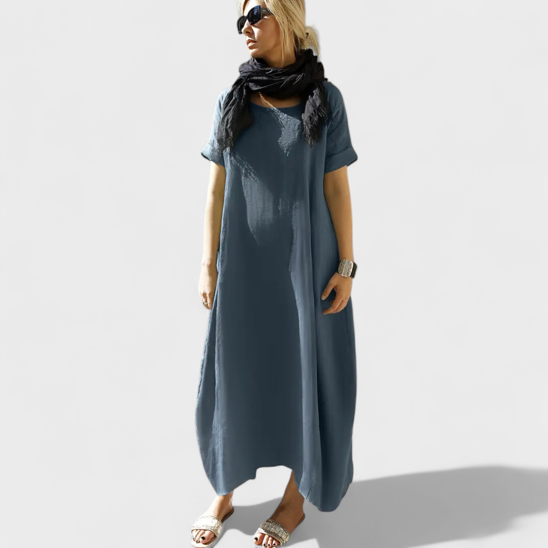 Minimalist ve zarif tasarımıyla bu elbise, rahat şıklığın en güzel örneği. Akıcı kesimi sayesinde özgür bir hareket alanı sunarken modern duruşuyla her anınıza uyum sağlar. Günlük kombinlerden özel anlara kadar size eşlik edecek çok yönlü bir parçadır.