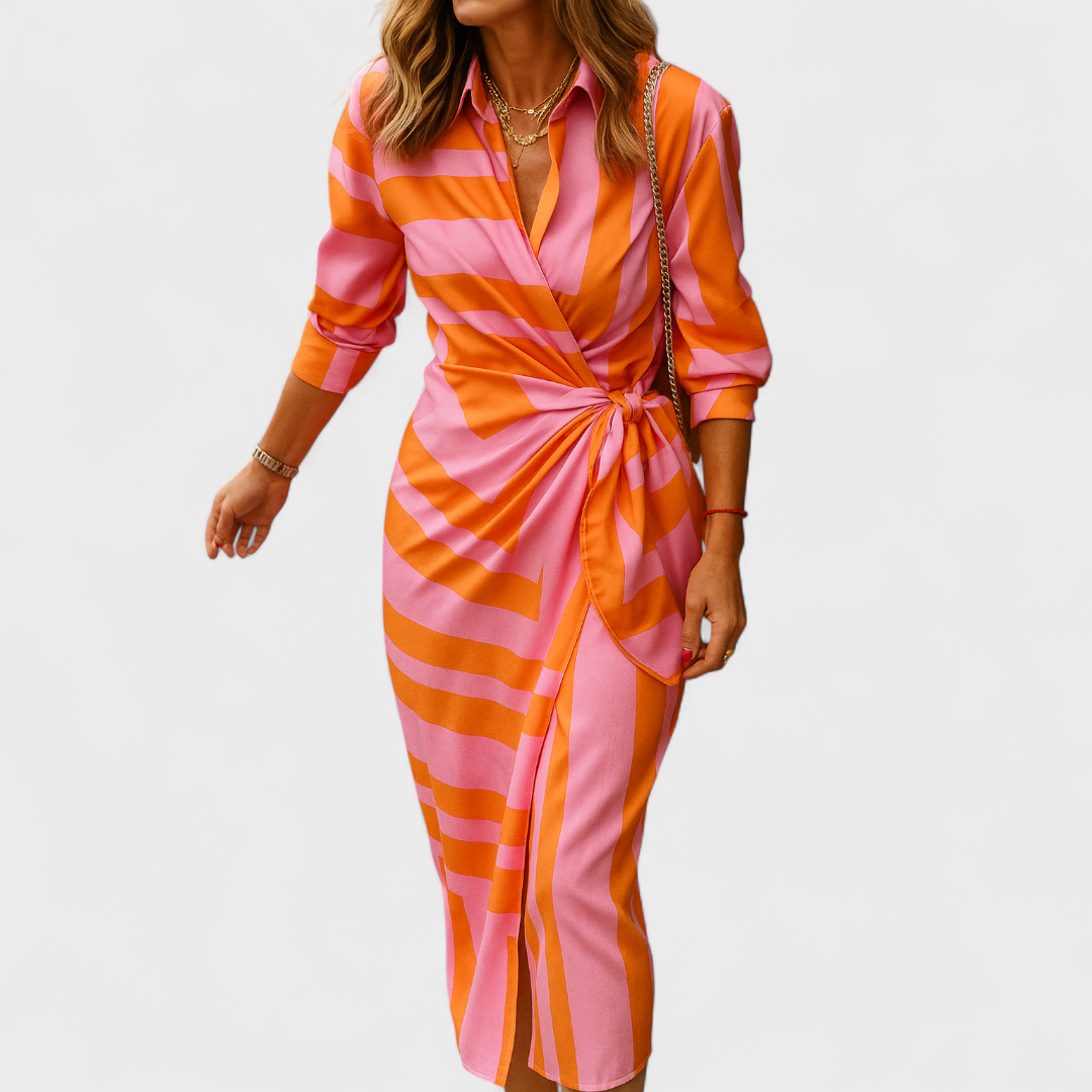 Vücudu ön plana çıkaran tasarım – kruvaze kesim zarif ve feminen bir görünüm oluşturur.