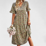 Bu elbise, hafifliği ve zarafeti zamansız bir tasarımda birleştirerek tazelik ve feminenlik hissi verir. Zarif çiçek deseni romantik bir dokunuş katarken, akıcı kesimi konfor ve hareket özgürlüğü sunar.