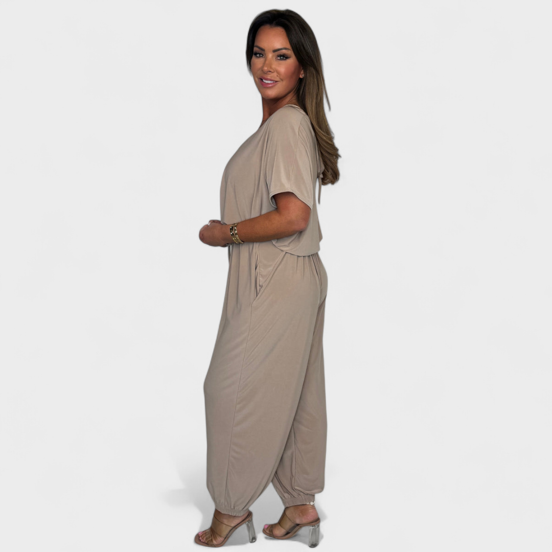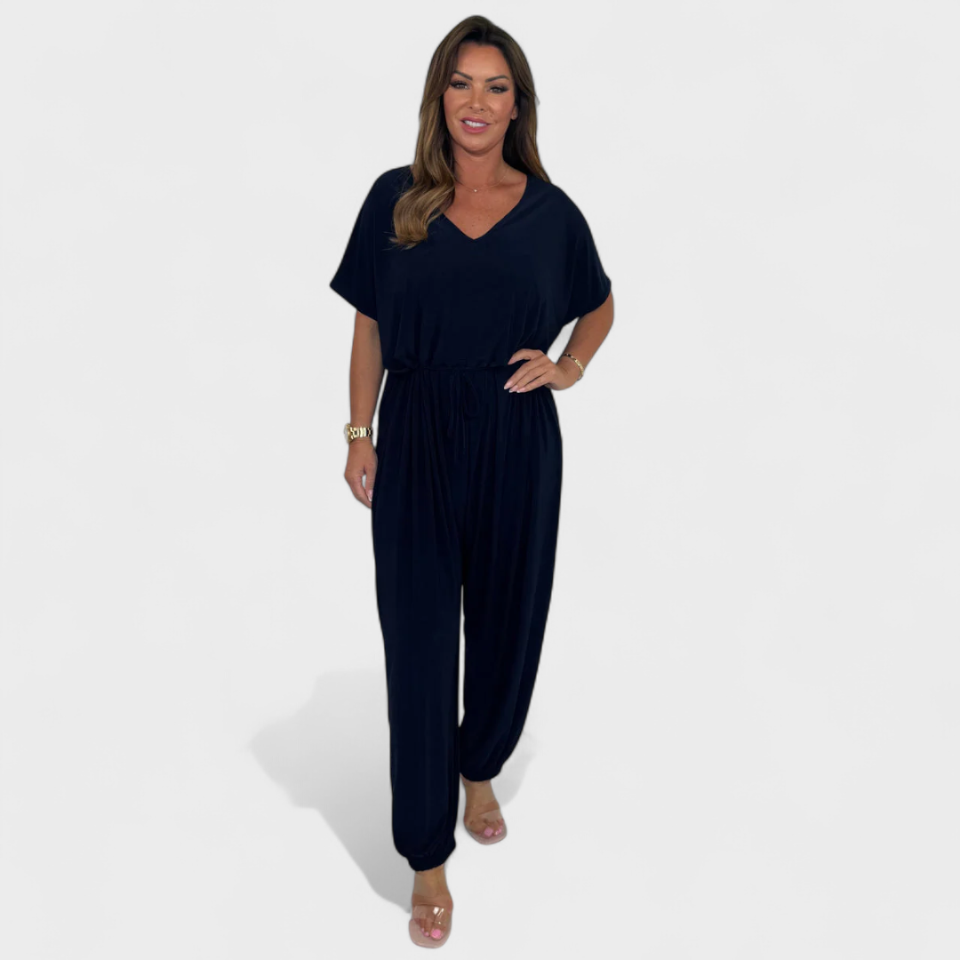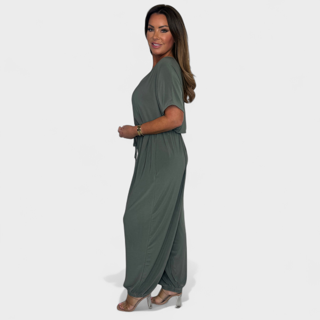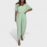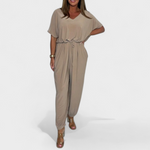 Bu tulum, pratikliği zarafetten ödün vermeden arayanlar için tasarlandı. Akıcı kesimi, ayarlanabilir beli ve vücuda uyum sağlayan duruşuyla hem günlük anlarda hem de özel davetlerde mükemmel bir seçimdir.