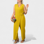 Bu tulum, rahatlık ve şıklığı tek parçada birleştirmek isteyen kadınlar için tasarlandı. Yandaki bağlama detayı silueti zarifçe ön plana çıkarırken, geniş paçaları akışkanlık ve hareket özgürlüğü sunar.