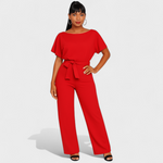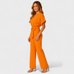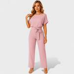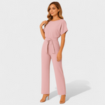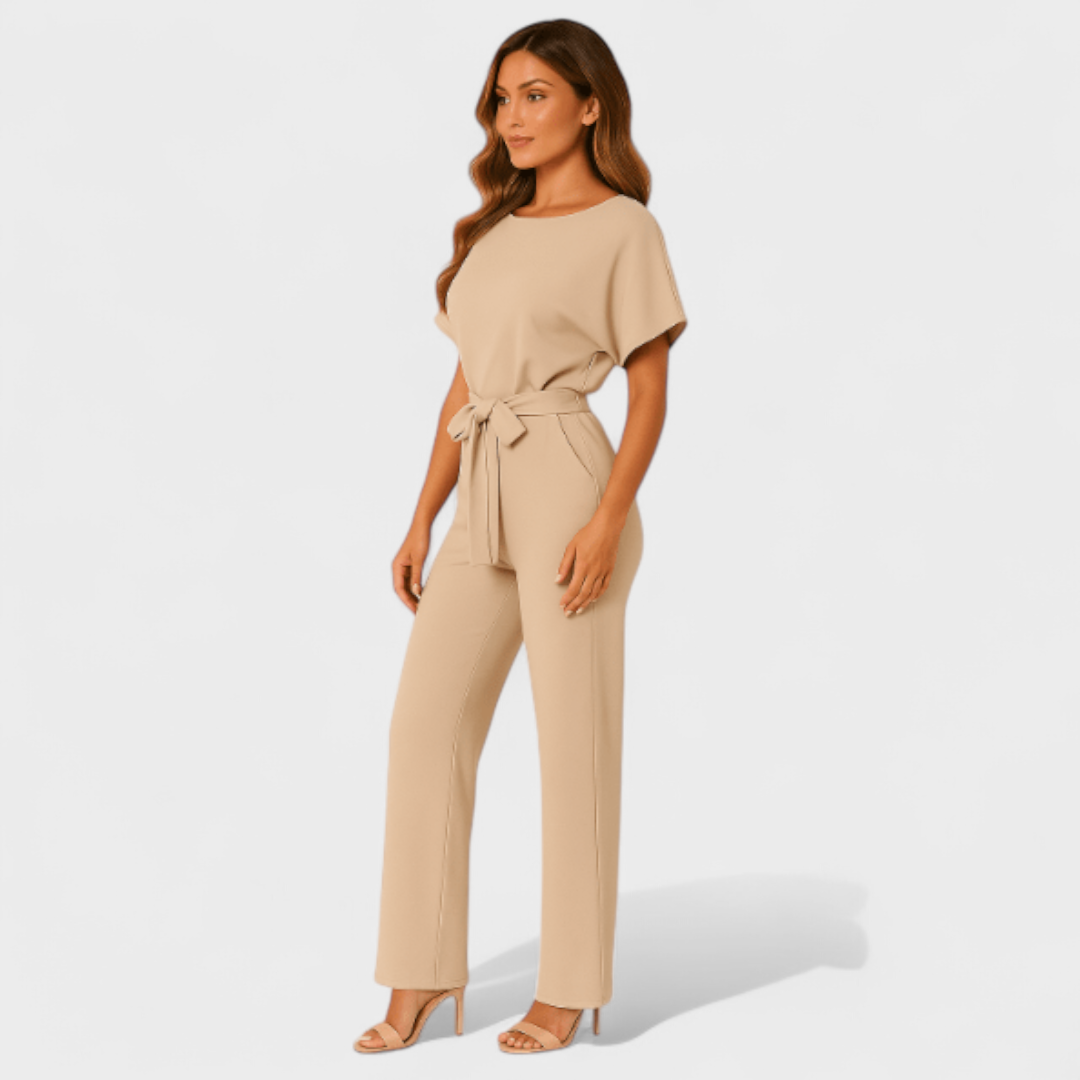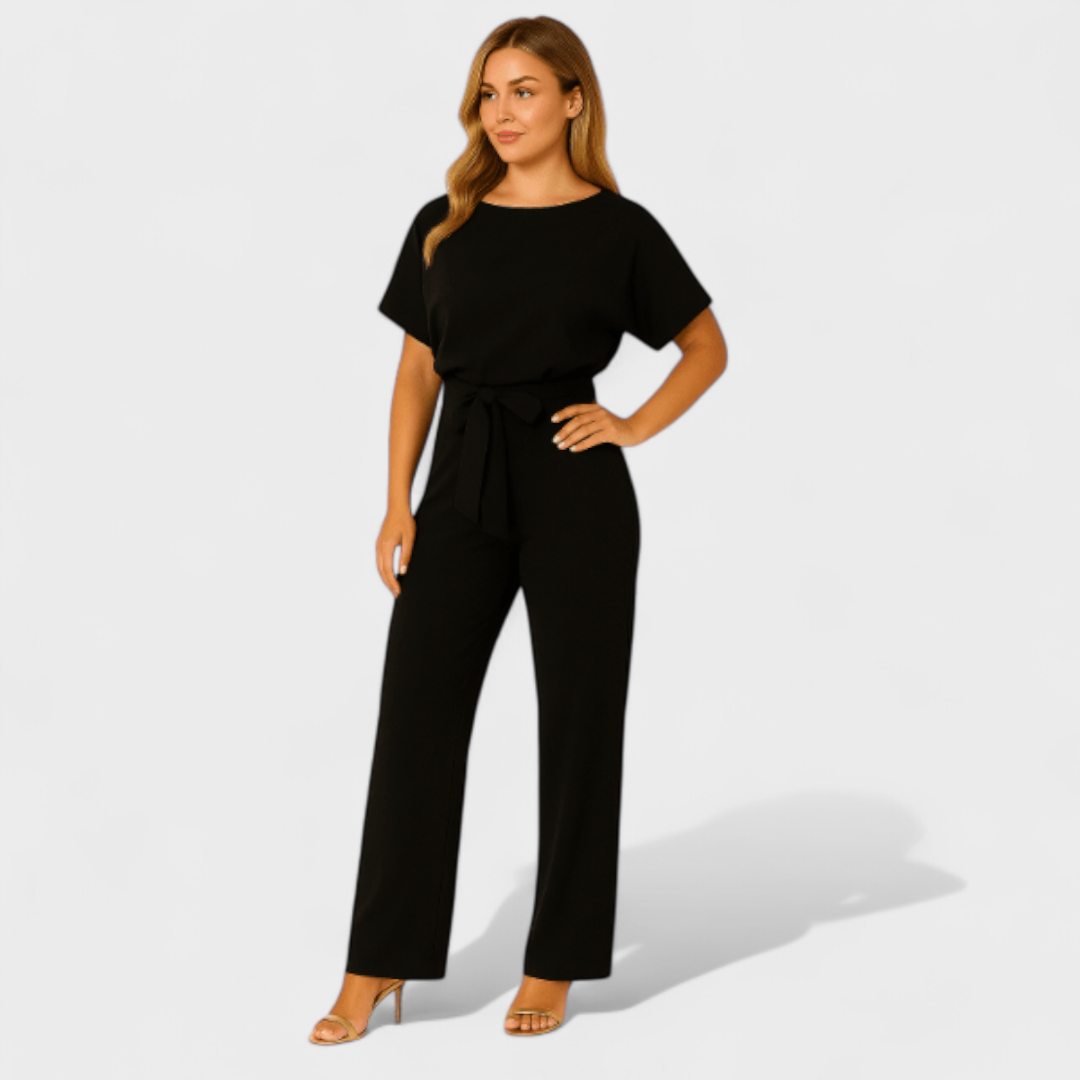 Bu şık tulum, sade çizgileri ve kusursuz kesimiyle uzun ve sofistike bir siluet sunar. Beldeki kemer detayı, vücut hatlarını zarifçe vurgularken; çok yönlü tasarımı sayesinde hem günlük şık kombinlerde hem de daha resmi görünümlerde kullanılabilir.