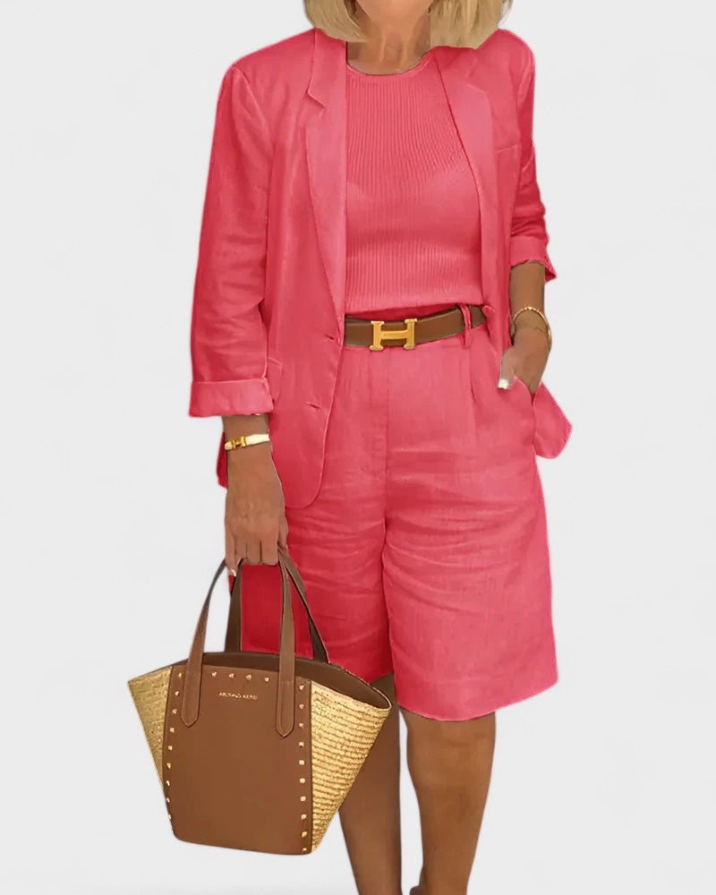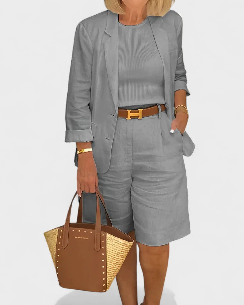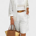 Bu zarif takım, rahatlığı ve şıklığı bir arada arayanlar için mükemmel bir seçim. Yapılı kesime sahip blazer ceket ve klasik tarz bermuda şort, zamansız ve modern bir görünüm sunar. Gündüz buluşmaları, şehir gezileri veya daha rahat iş ortamları için ideal bir tercih.
