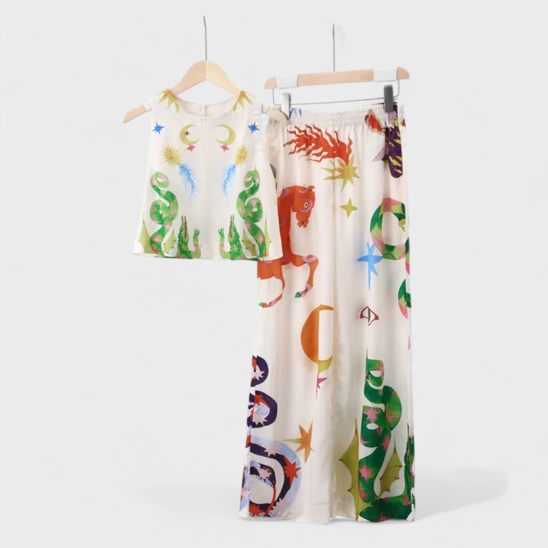 Bu takım, fark yaratmayı sevenler için ideal bir seçimdir. Cesur ve yaratıcı tasarımıyla her kombine enerji katar, özgünlüğünüzü ve özgüveninizi yansıtır. Akıcı ve rahat kesimi sayesinde hem günlük kullanımda hem de tarzınızı ifade etmek istediğiniz özel anlarda mükemmel uyum sağlar.