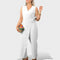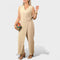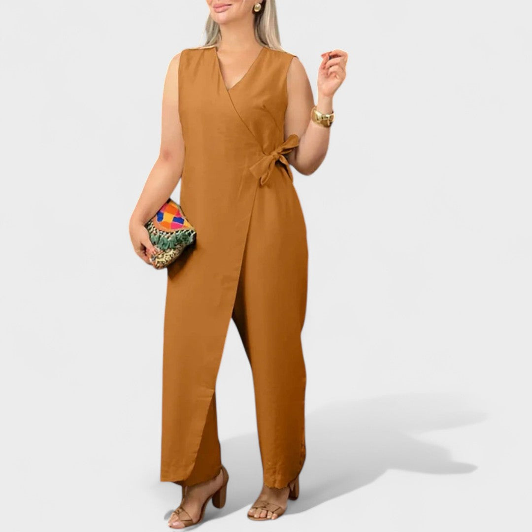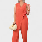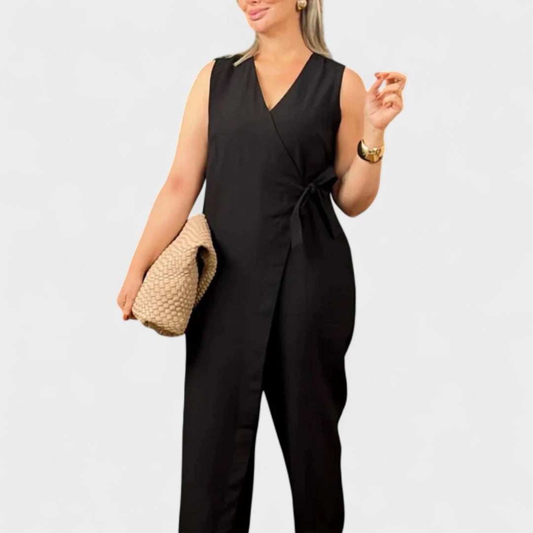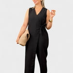 Kolsuz ve çapraz yaka detayıyla bu tulum, sade şıklığıyla öne çıkar. Bel kısmındaki bağlama detayı, zarif bir silüet sunarken rahat bir kullanım sağlar. Günlük kombinlerden özel davetlere kadar her ortamda rahatlıkla tercih edilebilir.