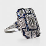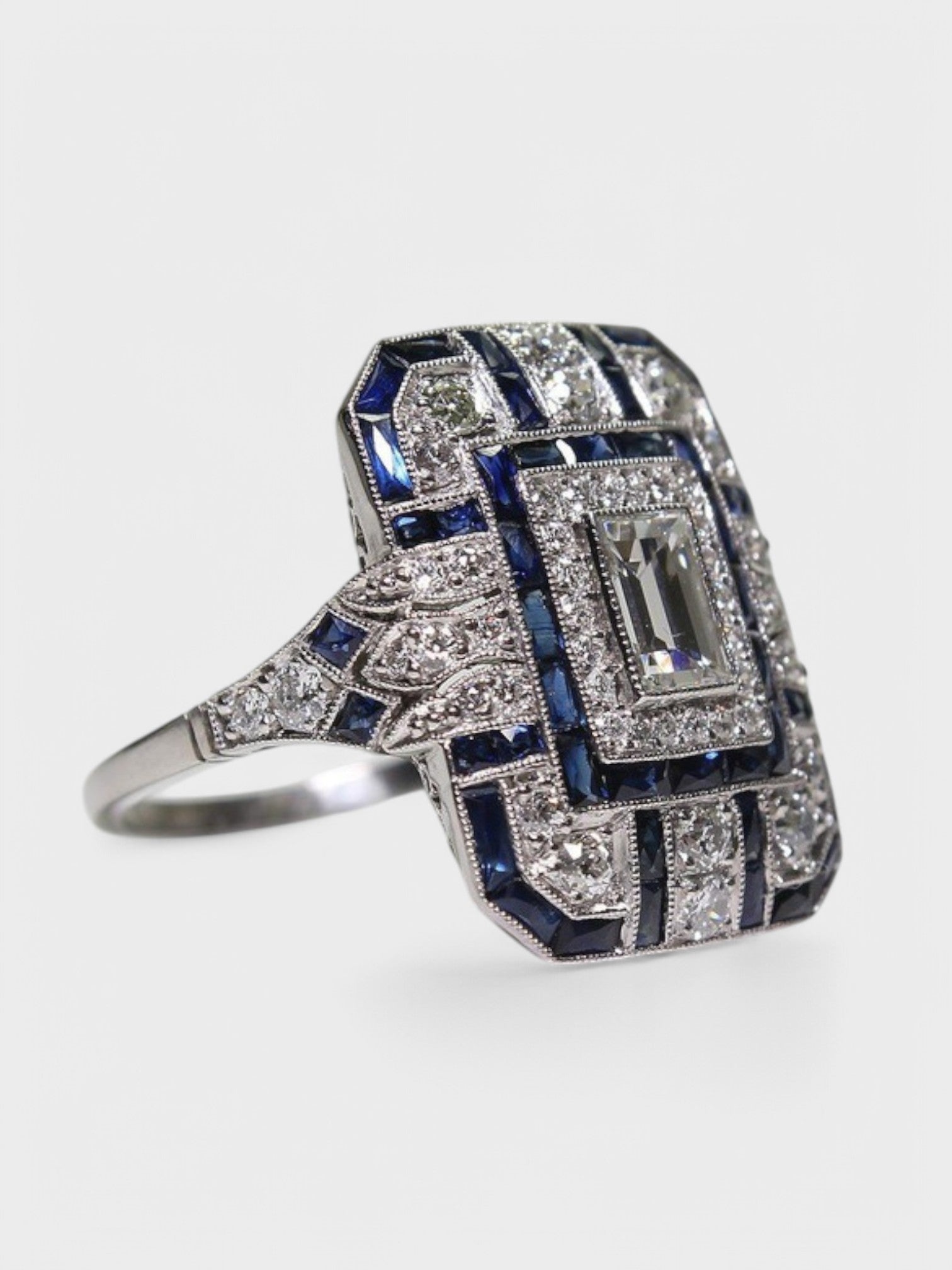 Eski tarz mavi zirkonlu parlak gümüş yüzük