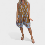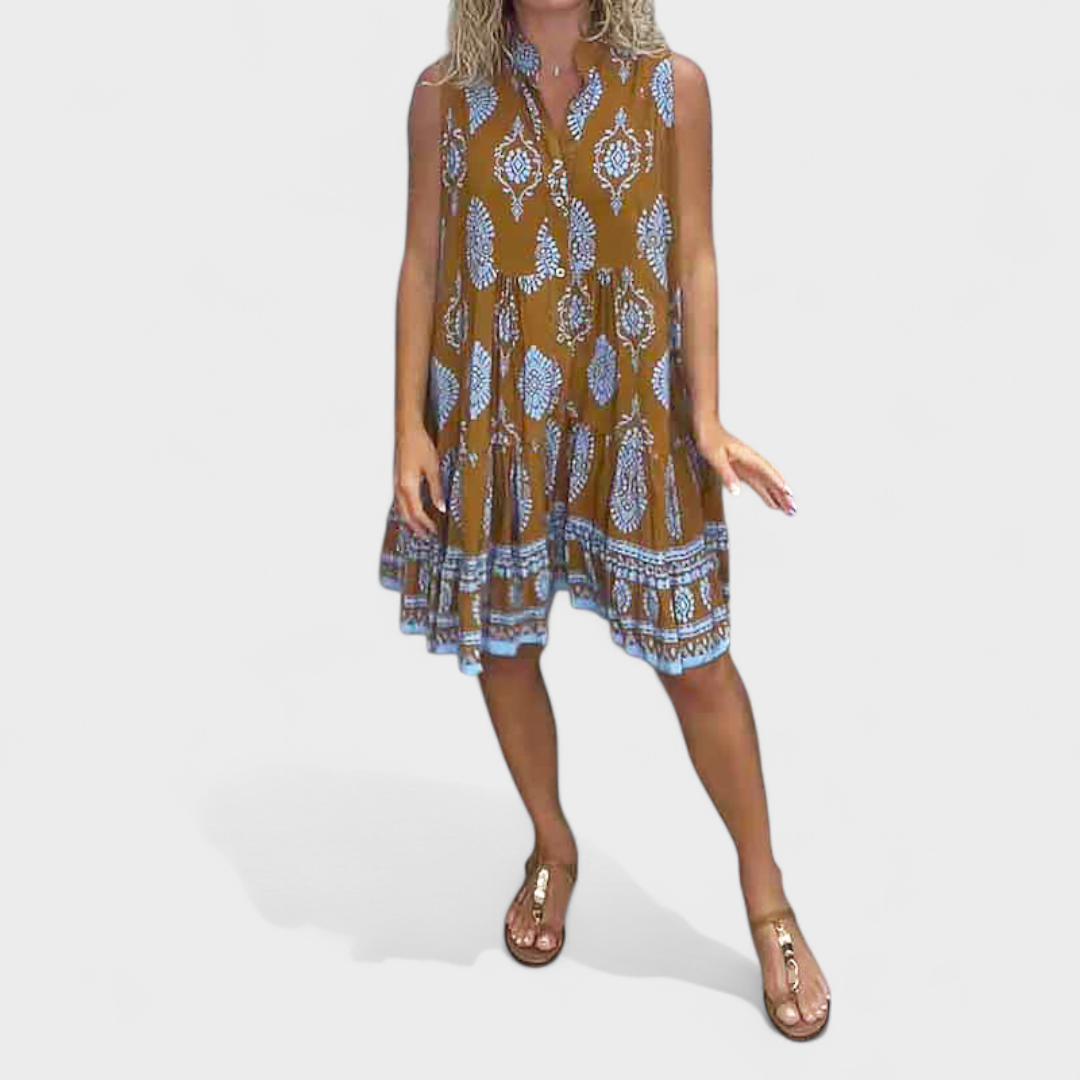Bu elbise, rahatlığı ve sade şıklığı bir araya getiriyor. Bol kesimi sayesinde özgürce hareket etmenizi sağlarken, zarif deseni görünümünüze kişilik katar. Güneşli günler, geziler veya samimi buluşmalar için mükemmel bir seçim olan bu parça, zahmetsiz bir ferahlık ve çekicilik sunar.