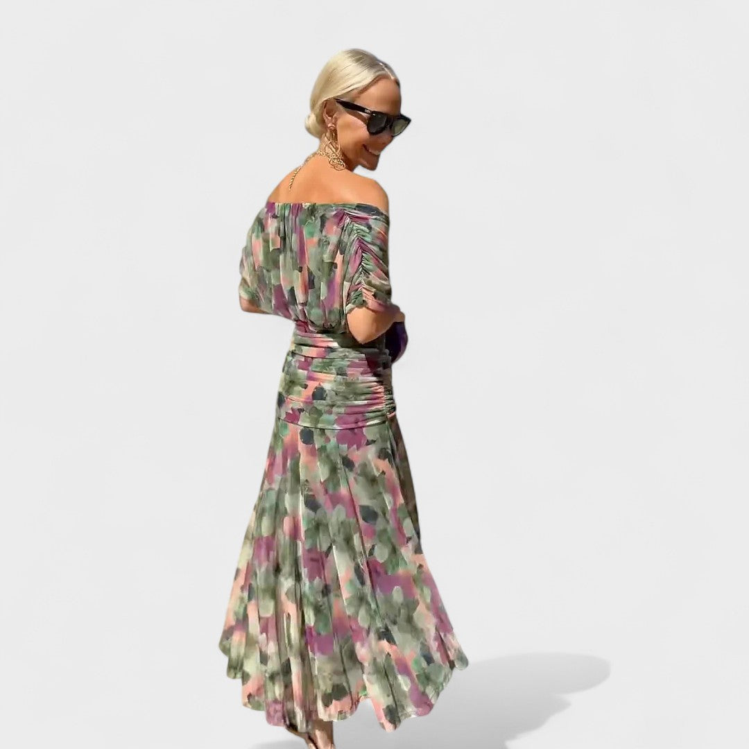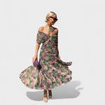 Zarif kesim: Omuz dekolteli tasarım, feminen bir hava katarak zarafeti ön plana çıkarır.
