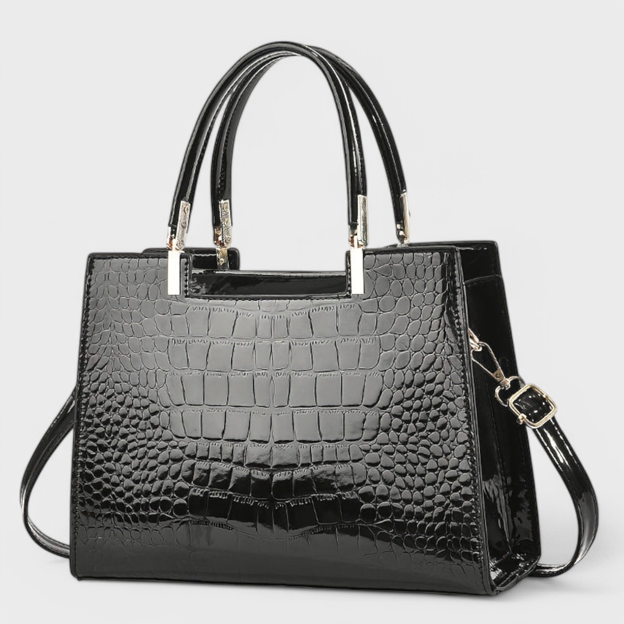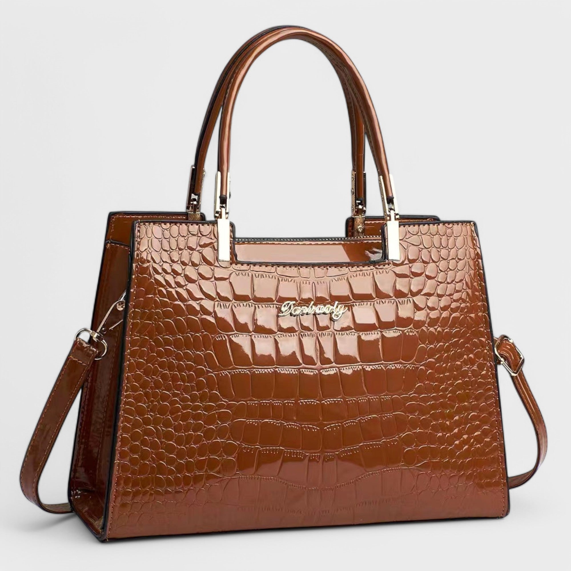 Görünümünüzü Flair Glossy Croc El Çantası ile Dönüştürün - Zarafet ve fonksiyonelliğin kesin eklenmesi.