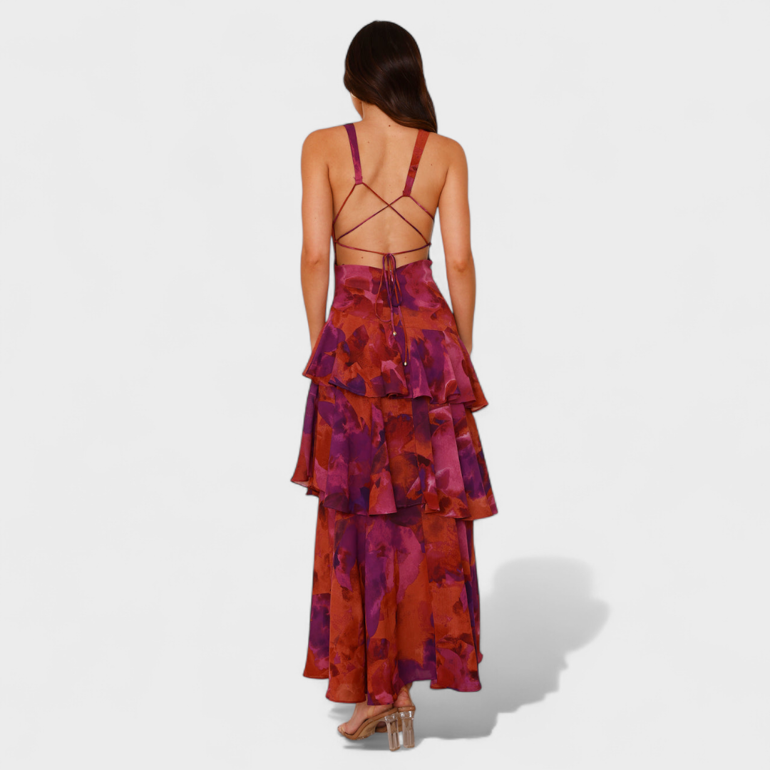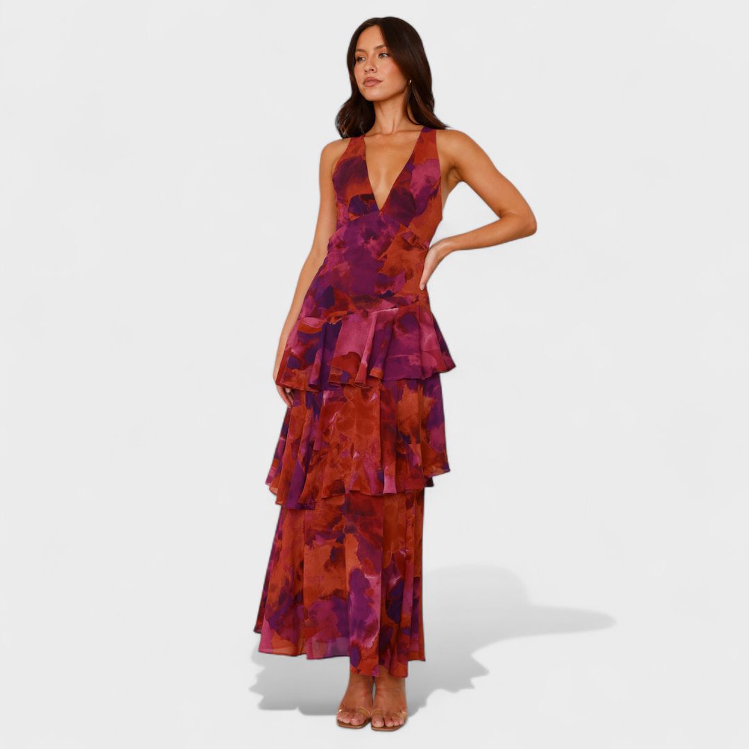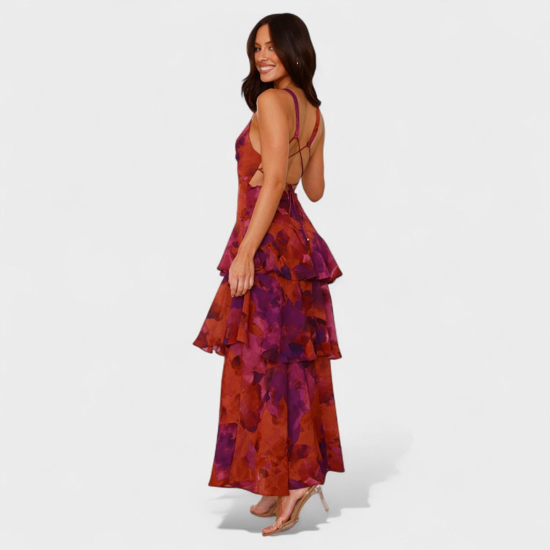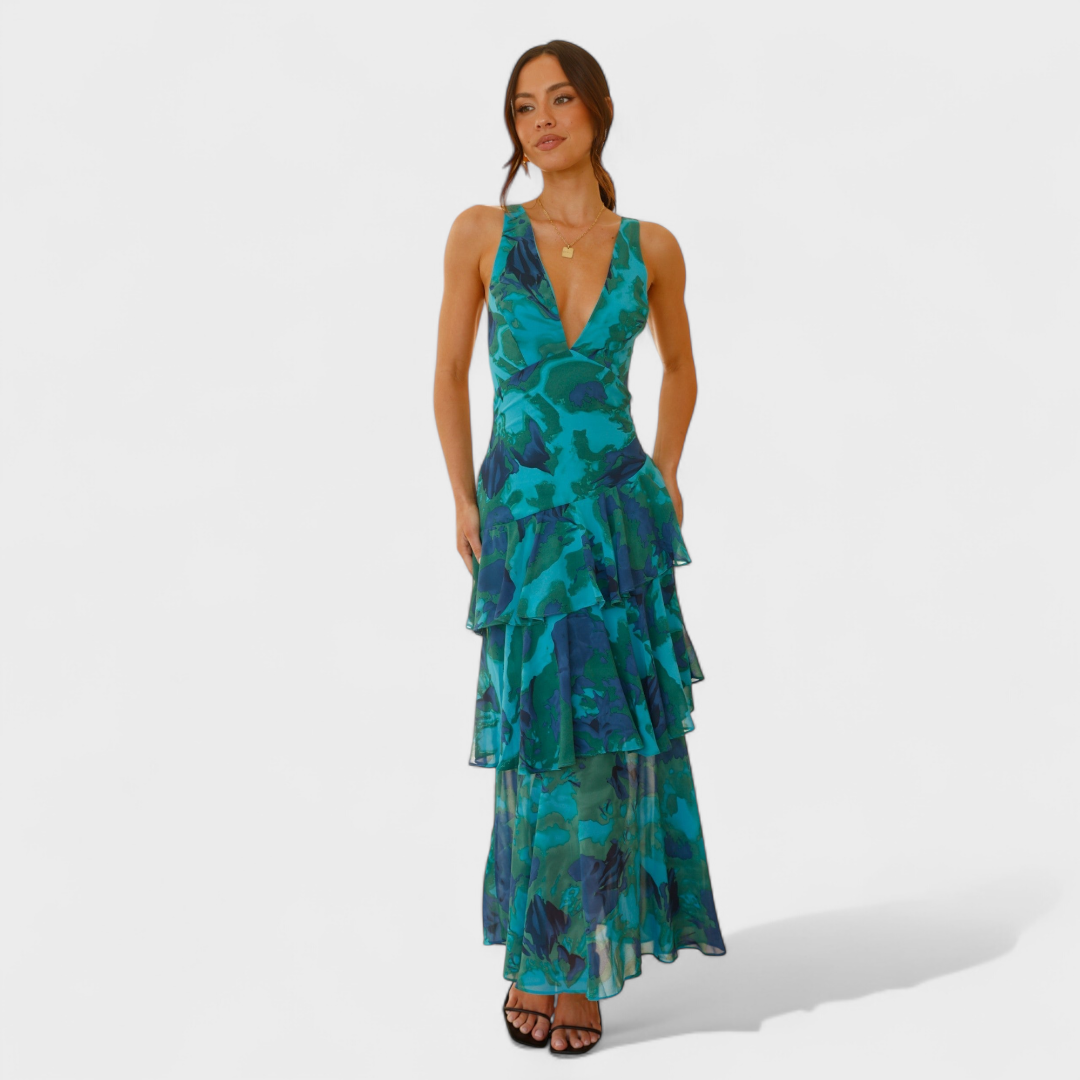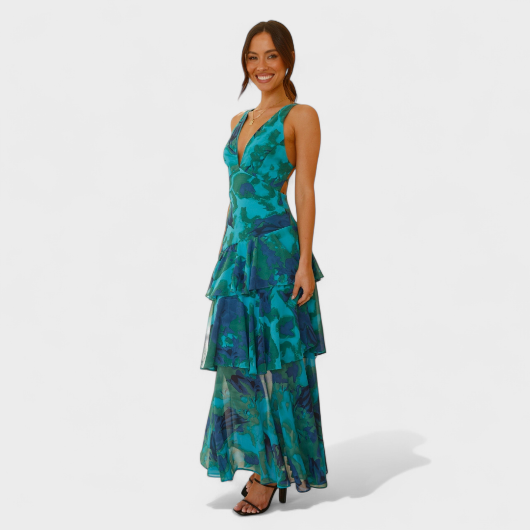 Bu elbise, hafif ve sofistike tasarımıyla feminen silueti zarifçe öne çıkarır. Kat kat kesimi hareketlere dinamizm ve çekicilik katar; özel günlerde kendinizi özgüvenli, zarif ve unutulmaz hissetmeniz için mükemmel bir seçimdir.
