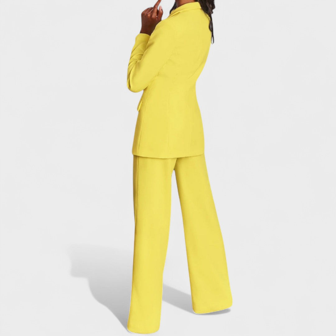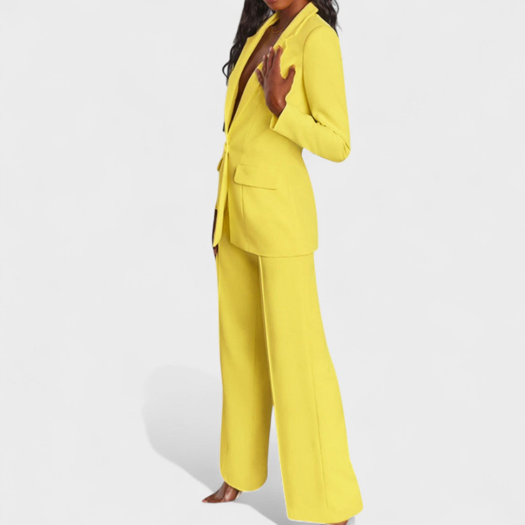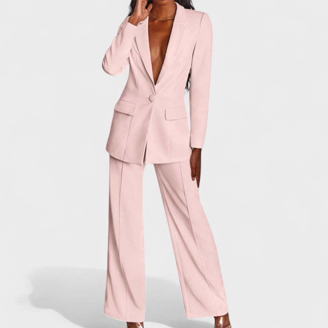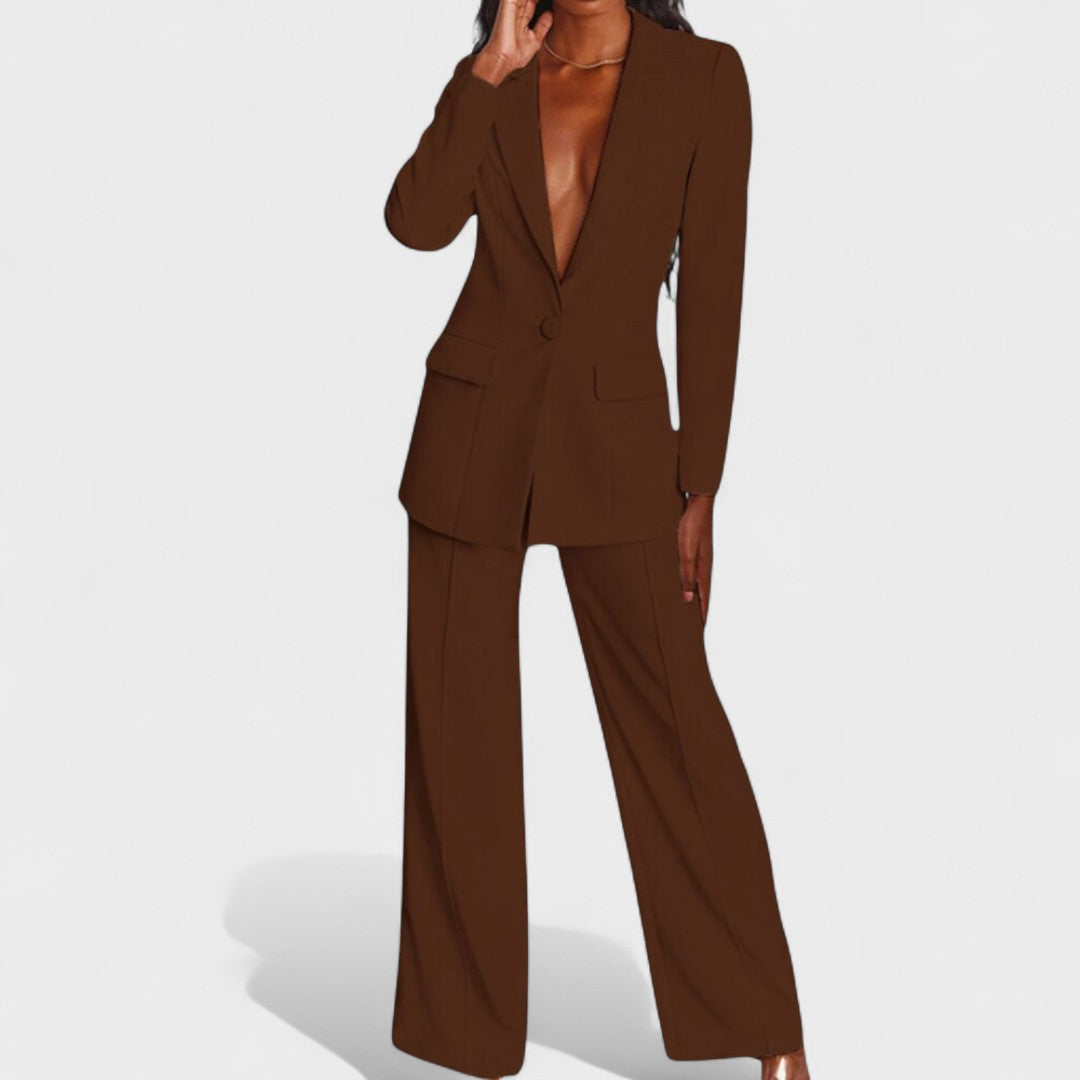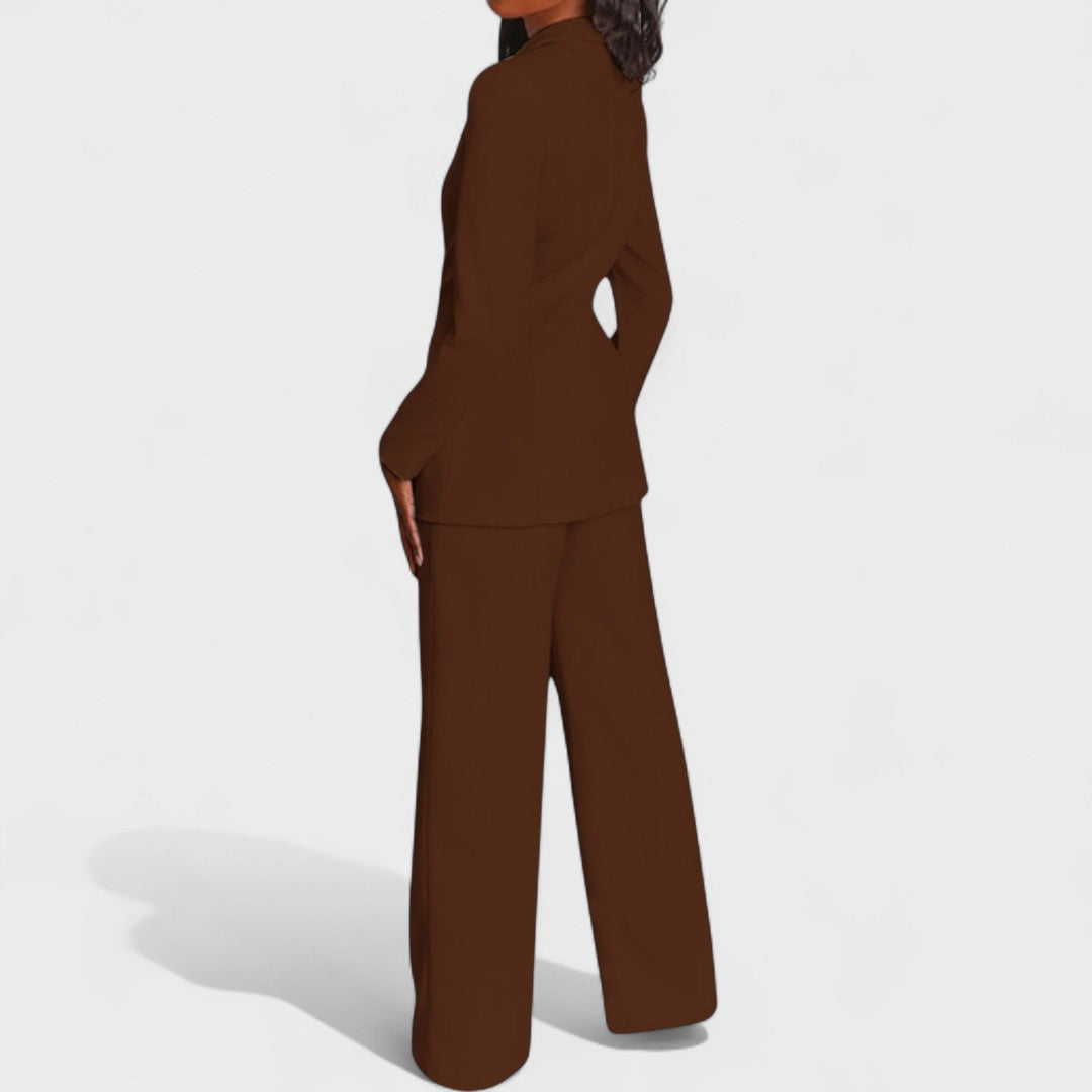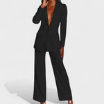 Bu blazer ve pantolon takımı, sofistike bir tarzı özgüvenle buluşturmak isteyen kadınlar için tasarlandı. Modern çizgileri ve yapılandırılmış kesimiyle her ortamda stilinizi ön plana çıkarır.
