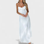 Sadelik ile şıklığı buluşturan bu maxi elbise, akıcı kumaşı ve feminen hatlarıyla her ortamda dikkatleri üzerinize çekiyor. İnce askı detayı ve zarif tasarımı, hem rahatlığı hem de sofistike bir görünümü bir arada sunuyor. Özel günlerden tatil akşamlarına kadar kusursuz bir seçim.