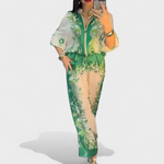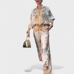 Bu takım, her detayında konfor ve şıklığı bir araya getirmek isteyen kadınlar için tasarlandı. Akıcı kesimi silueti doğal bir şekilde öne çıkarırken, zarif desenleri özgün bir hava katar.