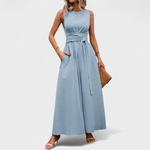 Bu elbise, azın çok olduğunun kanıtı. Minimalist tasarımı ve bel kısmını zarifçe vurgulayan detayıyla hem şık hem de çok yönlüdür. Özel günler için ya da günlük hayatınıza zarif bir dokunuş katmak istediğinizde mükemmel bir seçimdir. Konfor ve stili uyum içinde sunar.