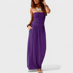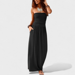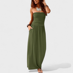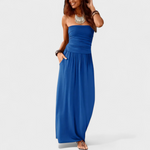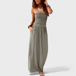 Askısız uzun elbise, hafiflik ve rahatlığı şıklıktan ödün vermeden arayanlar için ideal bir seçimdir. Akıcı kesimi silueti zarifçe vurgularken, pratik cepleri işlevsellik katar. Yaz günlerinde, tatillerde ya da şehirde keyifli anlarda tarzınızı tamamlayan vazgeçilmez bir parçadır.