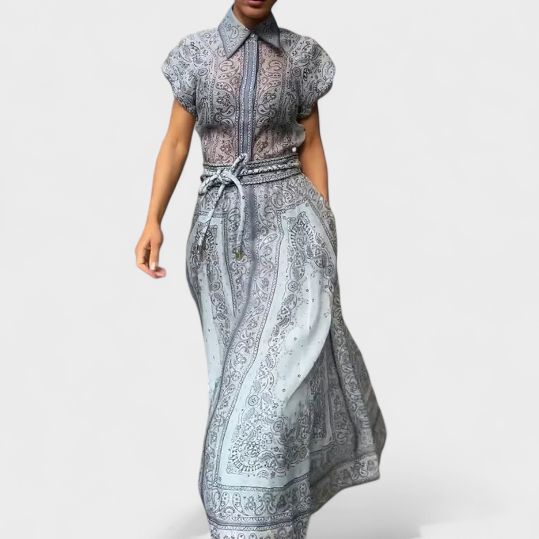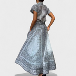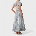 Bu elbise, klasik şıklığı modern detaylarla buluşturarak özel ve stil sahibi bir görünüm sunar. Yapılı kesimi silueti öne çıkarırken, zarif desenleri karakter ve çekicilik katar. Özel davetler için ya da şık ve unutulmaz bir tarz istediğiniz her an için mükemmel bir seçimdir.